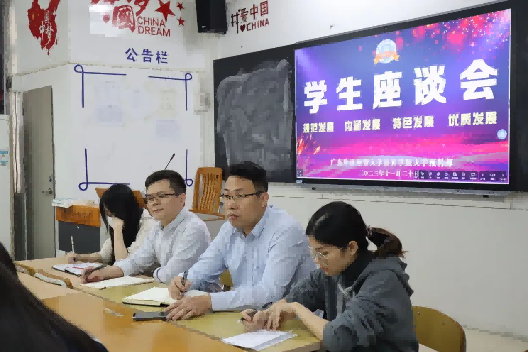 广外复读学校定期组织召开学生座谈会是学生发挥主人翁意识,参与广外复读学校教学、学生管理和建设的重要途径,也是进一步了解学生需求,为学生办实事解难题的重要举措。广外复读学校将持续倾听学生心声,回应学生关切,不断提高学生管理、教学管理质量,助力学生成长成才。