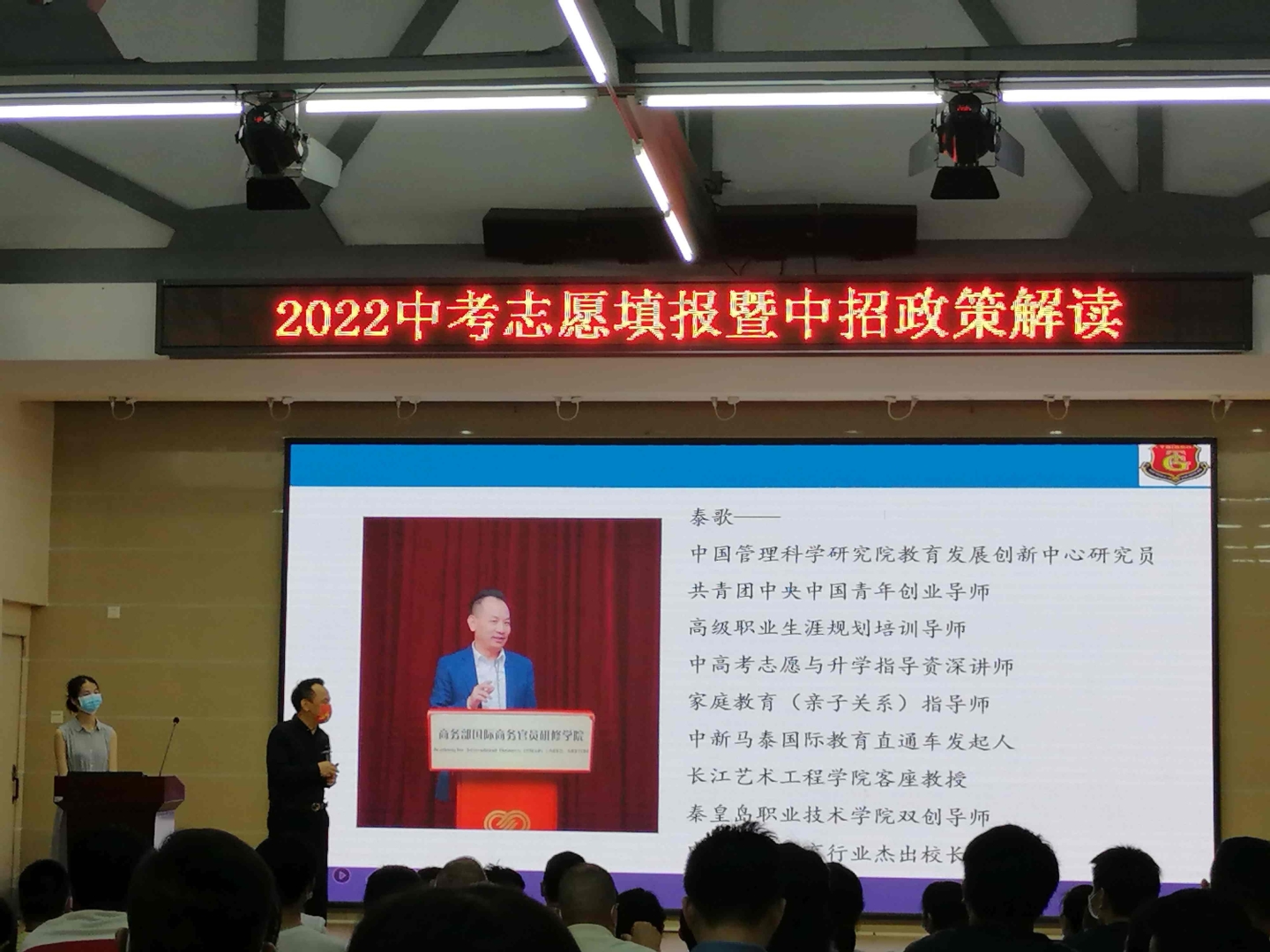 2022年5月27日,广外中高考课程中心特邀中考专家泰歌导师作为《中考志愿填报解读》讲座的嘉宾,目的是为广外复读班中考考生及家长们,进一步详解中考志愿填报的相关原则及科学合理的操作程序,为考生“考得好更要填的好”出谋划策,最终帮助考生们选出理想的高中。