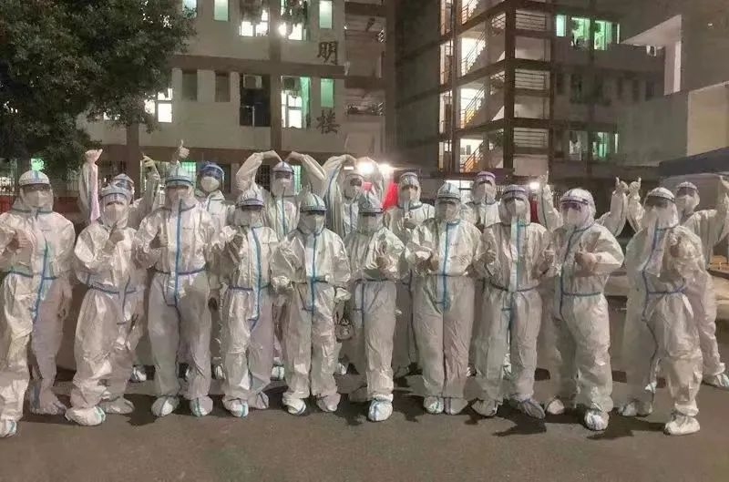 天微亮,老师们穿上隔离服奋战在一线,化身为搬运工将物资、饭食从1楼搬运到7楼,如此往返,一切备妥,再叫醒沉睡中的学生起床领餐。到点上课,老师们开始了一天的网课,中途休息一两节课还要逐个宿舍巡堂,以确保孩子们都在认真上网课。到了晚上,老师们是与孩子们谈心的心理导师,一边安抚他们的情绪,一边解决他们的难题。