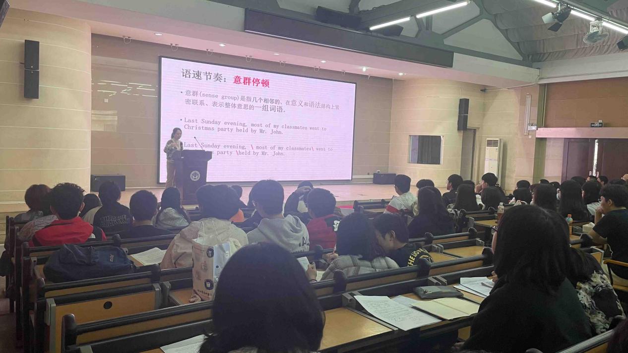 黄老师从考试题型和分值说明、听说考试计分办法、听说考试备考建议及各题型满分技巧四个方面对学生的听说机考进行有针对性的指导。