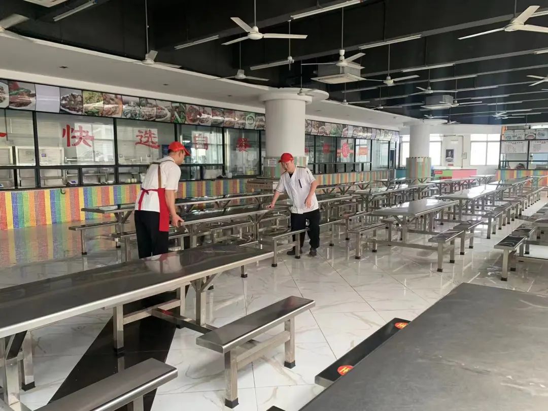 兵马未动,粮草先行。为了保障师生能够在一个干净、卫生的环境中就餐,食堂后勤人员经过充分的分工和准备,对食堂内部及周边环境做好完备的消毒工作,做好开学的食材采购工作以及后续计划,严格执行卫生标准,保障师生们能吃上健康营养的新学期第一餐,守护师生舌尖上的安全。