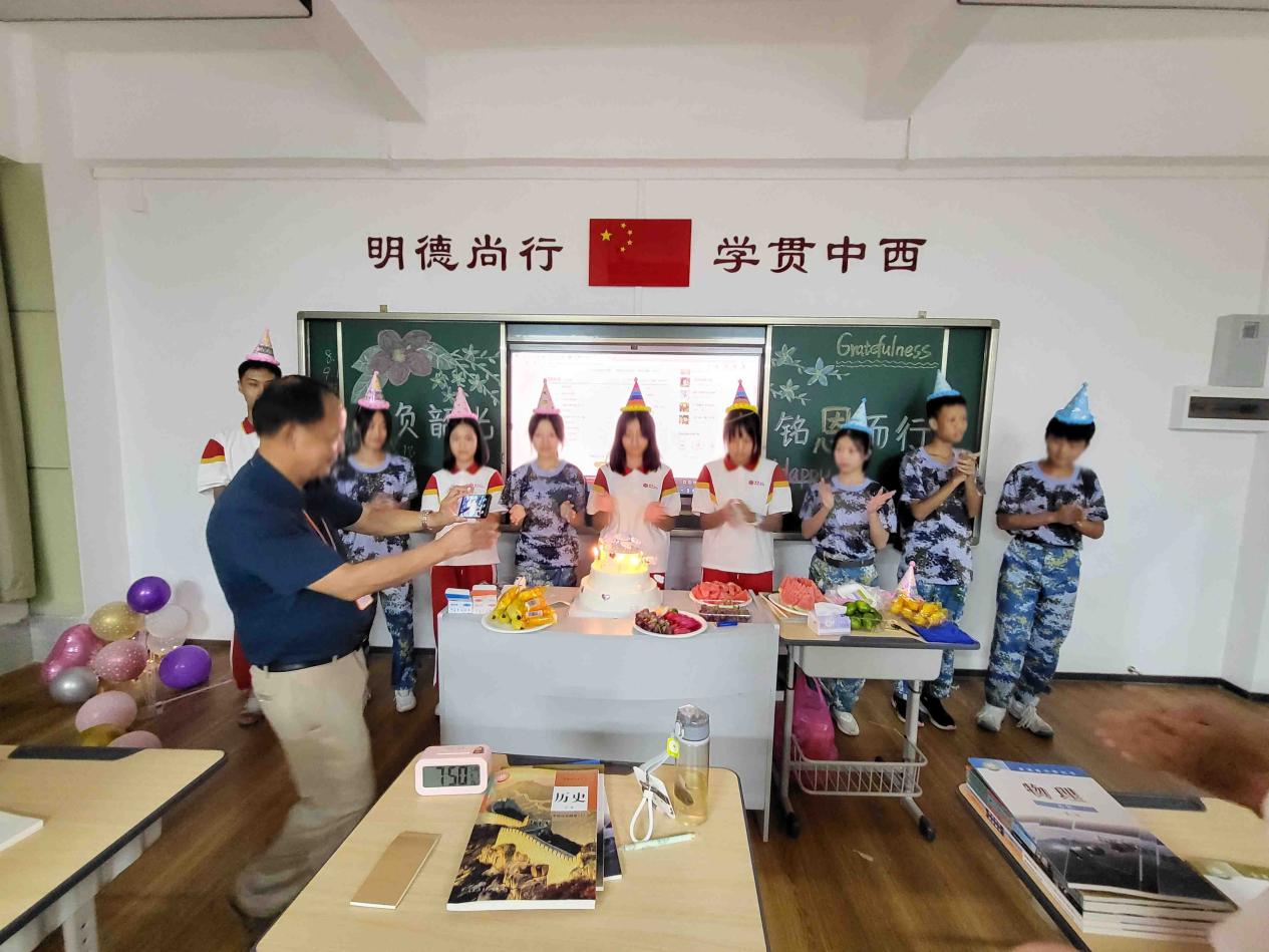 充盈着的欢乐笑声是校园最好的点缀,而这不仅仅是一次生日聚会,更是一段温暖相伴的时光。步入高中,很多学生都是第一次离开家,虽然这个生日没有父母的陪伴,但是这里有同学,有老师。同时,我们也通过家长微信群,让各位家长共同体验学生的快乐,家长们纷纷点赞。
