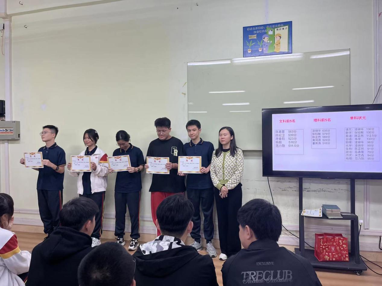 随后,高二年级级长许老师上台对此次月考表彰会的评选规则以及获奖人员,由王校长亲自颁奖,与班主任和学生们一起合影留念。