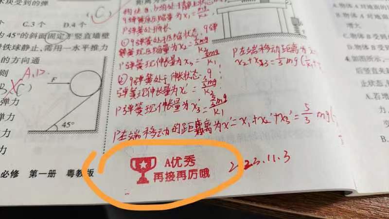 当发现学生的错误时,他们会细琢磨错误的根源,然后贴心的在题目旁写出小提示并予以纠正。当看到学生的独特见解和创新思维时,他会露出欣慰的笑容。对于有些用书面语言不能表达的问题,他会把学生喊到身前面批,耐心指导,用鼓励的话语激发学生的自信心。