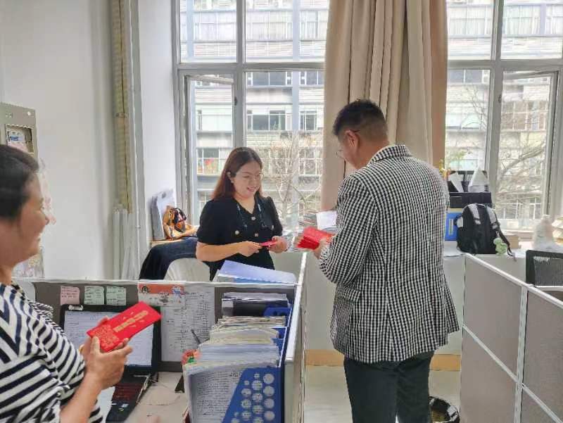 祝福的话语似乎还不足以表达校领导们对于教职工们的祝福与期望,一封封象征着勉励的红包由校领导亲手送到了每一位教职工手上。教职工与校领导都露出了幸福的笑容。