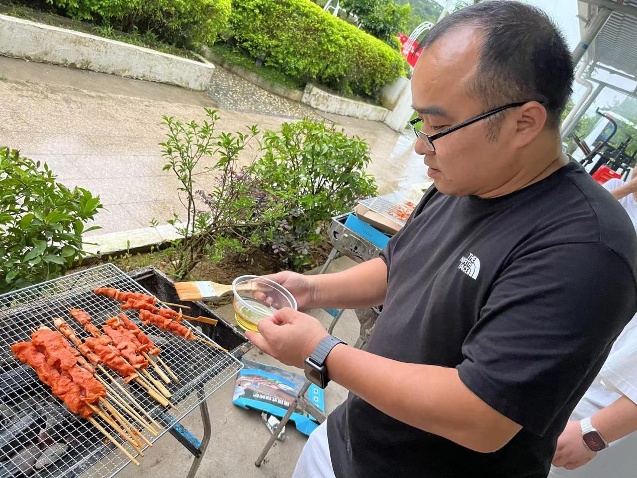 热情澎湃的活动过后,夜幕已然悄悄落下,星星也探出头来观看着烟火人间。烧烤炉的炭火已经点燃,驱散了秋夜的些许寒冷。老师们分工协作,井井有条。在等待的时间里,老师们欢声笑语,谈天说地,时不时问一句“烤好了没?”,现场气氛很是和谐愉快。