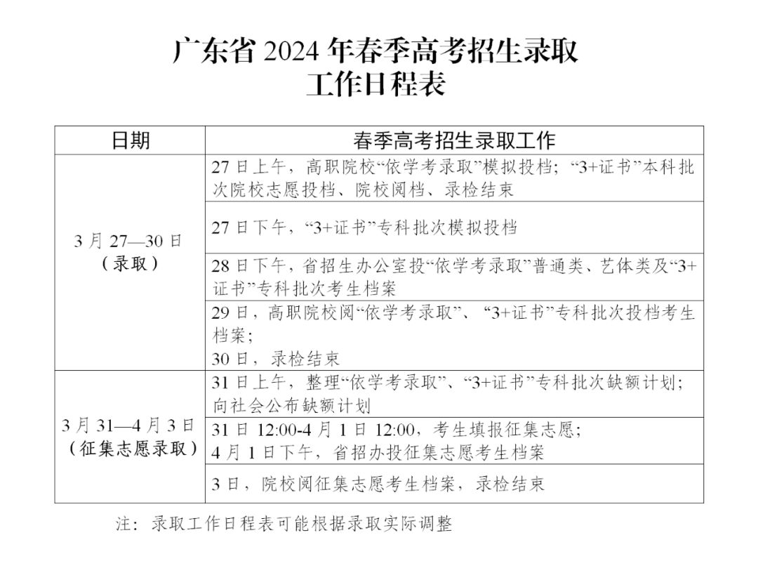 广东省2024年春季高考招生录取工作日程表公布了!