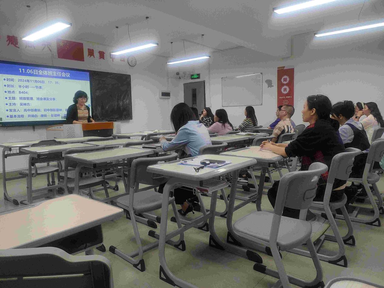 2024年11月6日,在黄师中高考学校里,一场关于班级管理、班会课及经验分享的全体班主任会议在此举行。17时35分,随着主持人吴老师的开场致辞,会议正式开始。